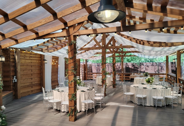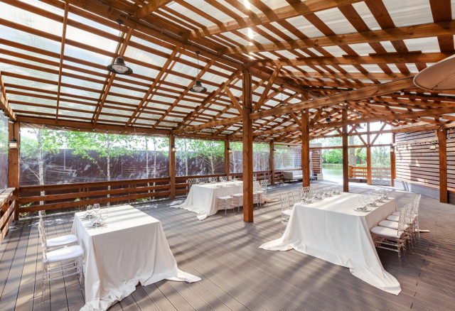Малая веранда с прудом "Верона" Вместимость 120 Средний чек 6 500 ₽ Стоимость аренды 80 000 – 150 000 ₽ Депозит на банкет 250 000 – 400 000 ₽