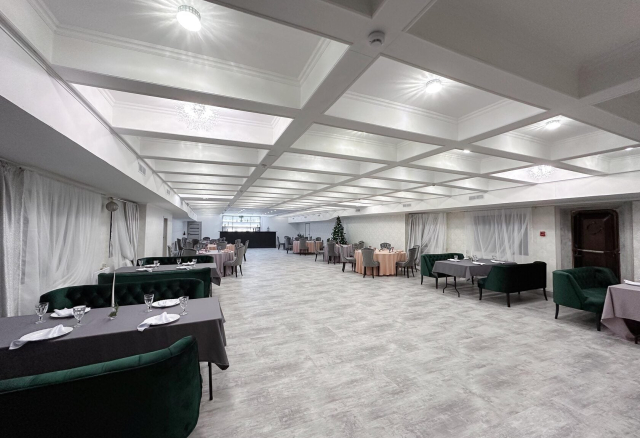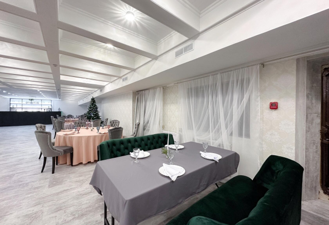 Основной зал Вместимость 120 Средний чек 7 500 ₽ Стоимость аренды 120 000 – 150 000 ₽ Депозит на банкет Нет