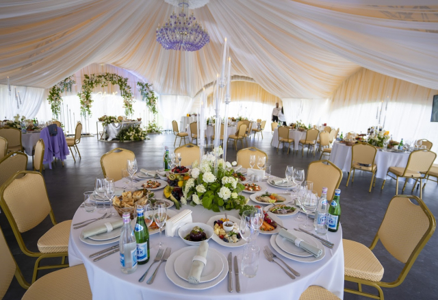 VIP шатер «Золотой фазан» Вместимость 120 Средний чек 6 500 ₽ Стоимость аренды 200 000 – 350 000 ₽ Депозит на банкет Нет