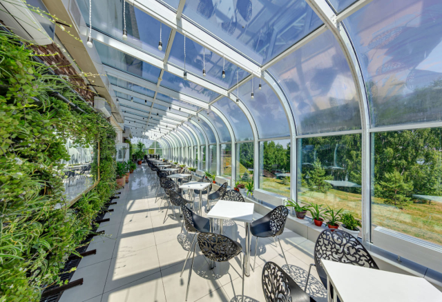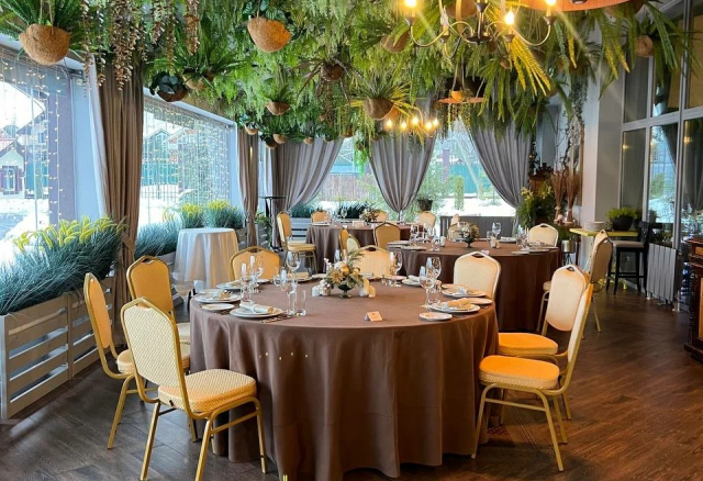 Панорамная веранда Вместимость 50 Средний чек 7 000 ₽ Стоимость аренды 60 000 ₽ Депозит на банкет Нет