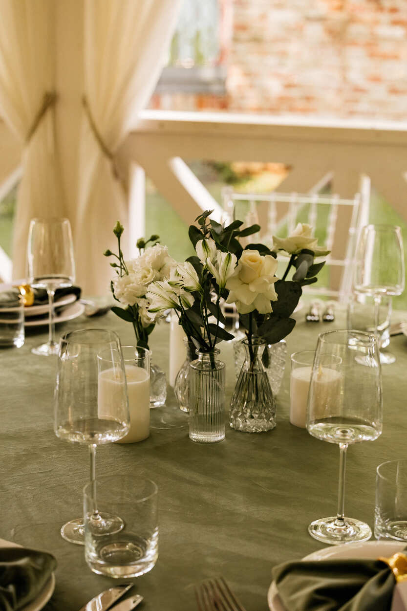 Камерные свадьбы, в которых особенно важно создать индивидуальный дизайн и атмосферу с помощью декора, где будут живые цветы, свеч и персонализированная полиграфия. Бюджет таких проектов начинается обычно от 100 000 рублей.