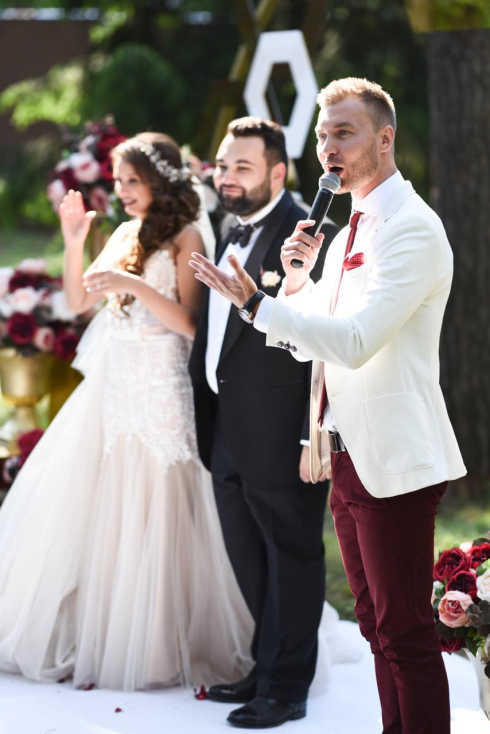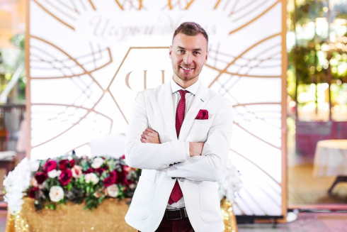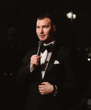 "Привет! За 12 лет работы за мной закрепилось звание лидера event-индустрии, что подкрепляется множеством абсолютно разнообразных проектов. Всего через 3 года работы я стал победителем самой масштабной свадебной премии «Wedding Awards». Мой фирменный стиль ведения свадьбы - это «друг семьи», который является адаптером для незнакомых друг с другом гостей. Не кричу Горько, против всяческих поборов, люблю массовые интерактивы и интертеймент интерактивы не требующие активного участия. Слежу за своим стилем и образом до конца мероприятия, не смеюсь над гостями, а смеюсь вместе с ними).