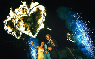 Горящие сердца является, своего рода, символом пылающих влюбленных сердец молодоженов. Новоиспеченные муж и жена сами зажигают конструкцию под звуки любимой песни. Сопровождая все действо холодными фонтанами, вы усилите эффектность во много раз. Незабываемые кадры- память на всю жизнь. Цена зависит от времени горения, размера фигур и конечно дополнительно используемой пиротехники.